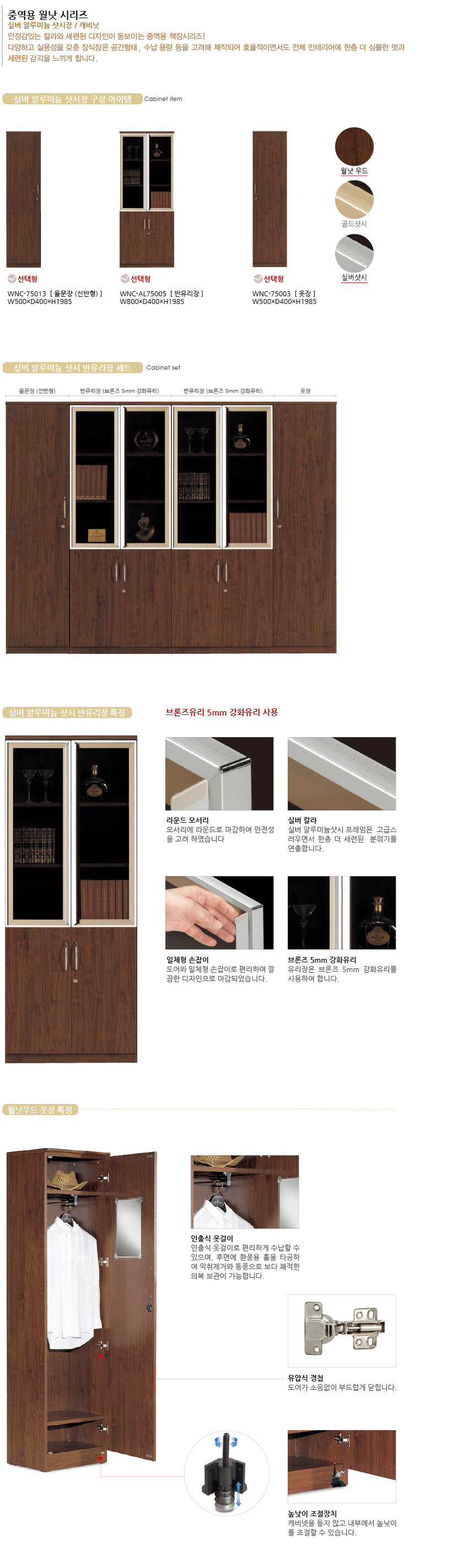 월넛 7시리즈 반유리장 세트(실버샷시) > 하이퍼스 시리즈