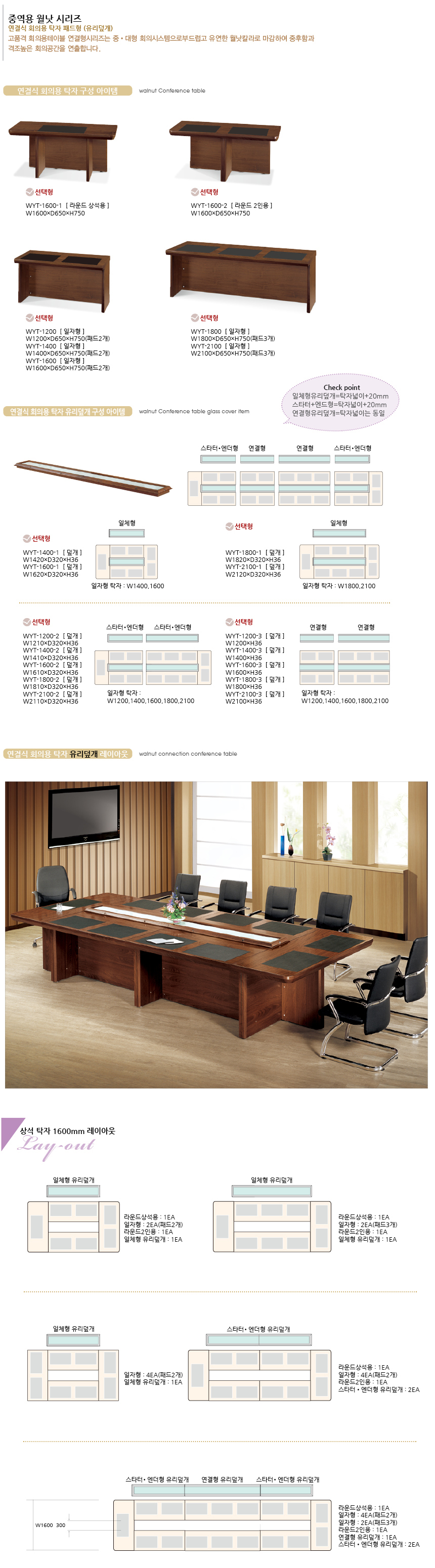월낫 연결식 회의용 탁자 패드형 (유리덮개)