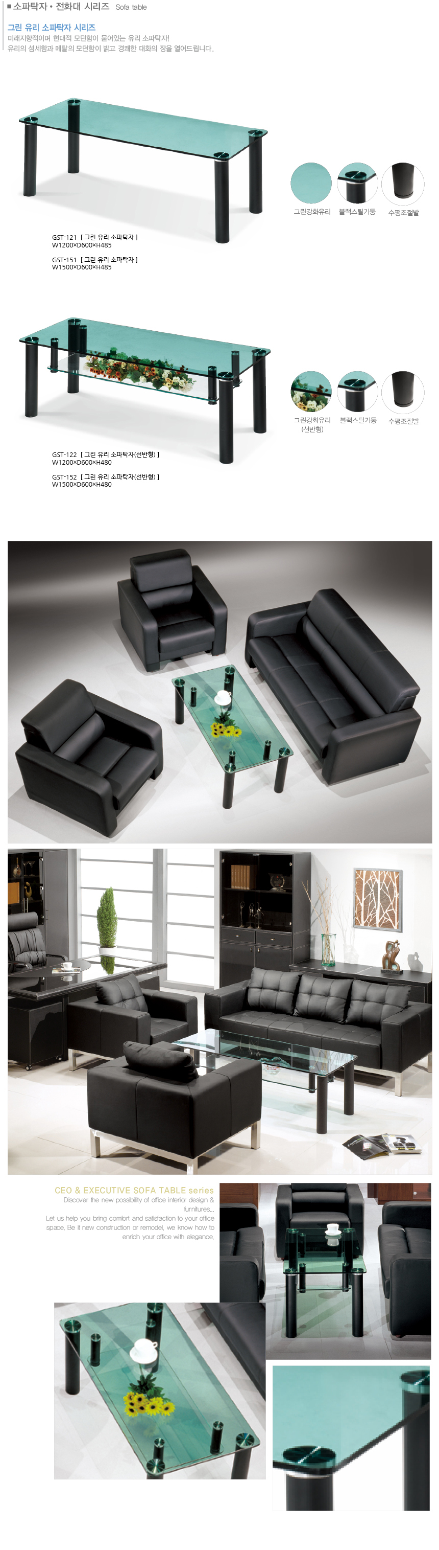GST 유리 소파탁자(그린) > 소파