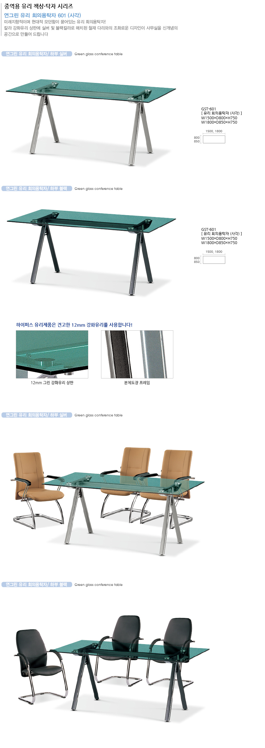 GST-601 사각 유리회탁(그린. 블랙하부) > 테이블