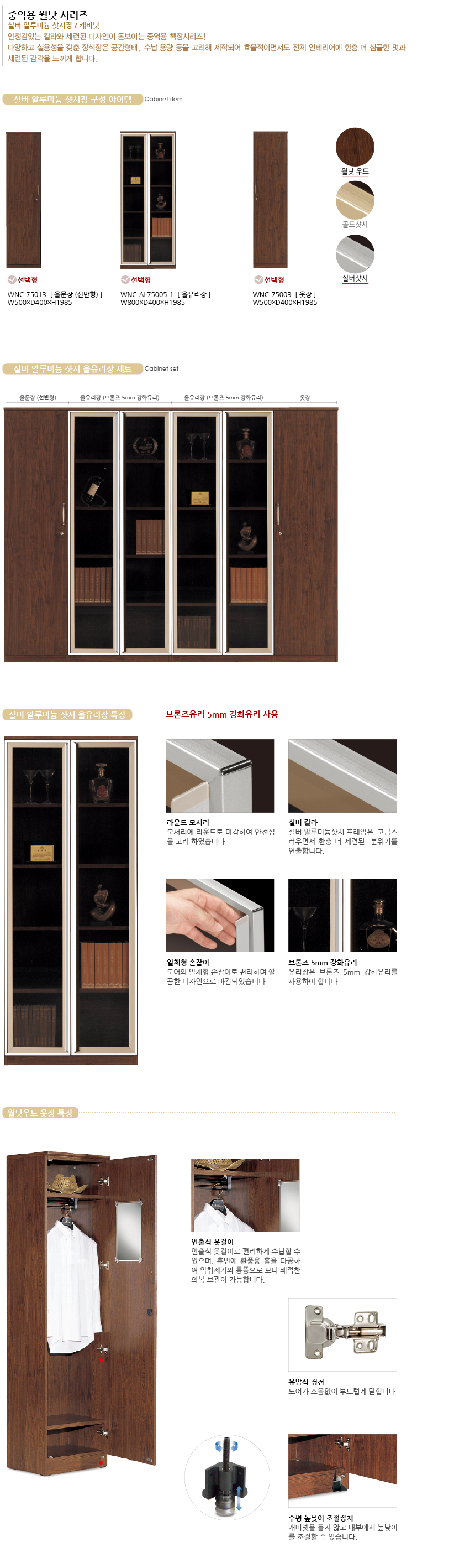 월넛 7시리즈 반유리장 세트(실버샷시)